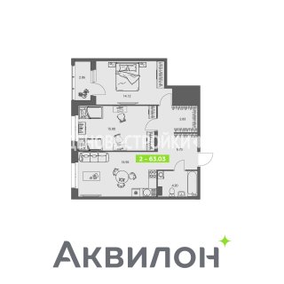 2-комн.Площадь: 63.03м2