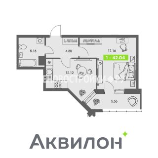 Продажа квартиры: 1-комн., 42.04 кв.м, 7.32 млн.руб. (id:165051)
