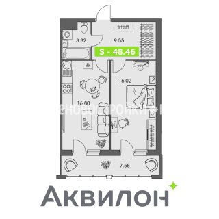 Продажа квартиры: 1-комн., 48.46 кв.м, 8.47 млн.руб. (id:165081)