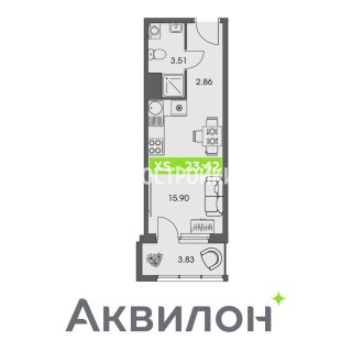 СтудияПлощадь: 23.42м2