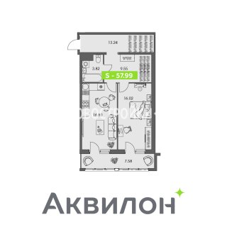 Продажа квартиры: 1-комн., 57.99 кв.м, 10.55 млн.руб. (id:165097)