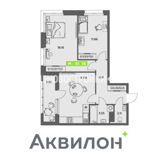 2-комн.Площадь: 61.78м2