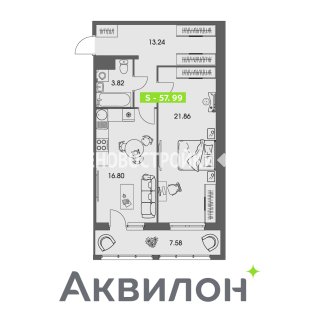 1-комн.Площадь: 57.99м2