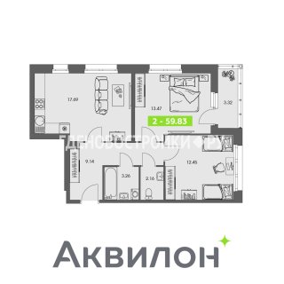2-комн.Площадь: 59.83м2
