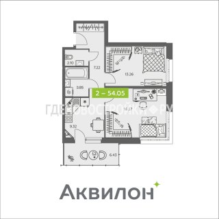 Продажа квартиры: 2-комн., 54.05 кв.м, 8.99 млн.руб. (id:163648)