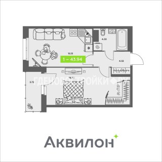 Продажа квартиры: 1-комн., 43.94 кв.м, 7.39 млн.руб. (id:168701)