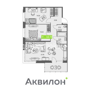 2-комн.Площадь: 68.79м2