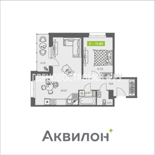 1-комн.Площадь: 51.89м2