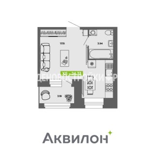 СтудияПлощадь: 24.73м2