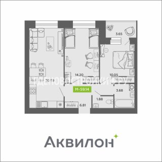 2-комн.Площадь: 59.14м2