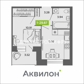 1-комн.Площадь: 29.87м2