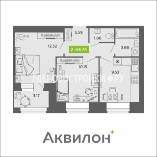 2-комн.Площадь: 44.74м2