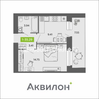 Продажа квартиры: 1-комн., 35.29 кв.м, 6.15 млн.руб. (id:168204)