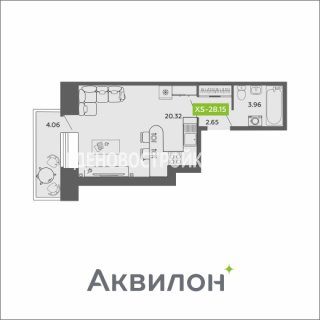 СтудияПлощадь: 28.15м2