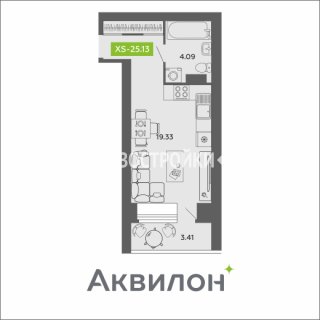 СтудияПлощадь: 25.13м2