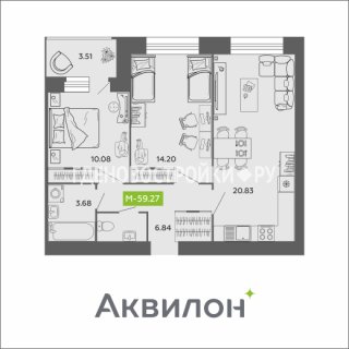 2-комн.Площадь: 59.27м2