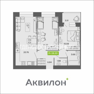 2-комн.Площадь: 59.2м2