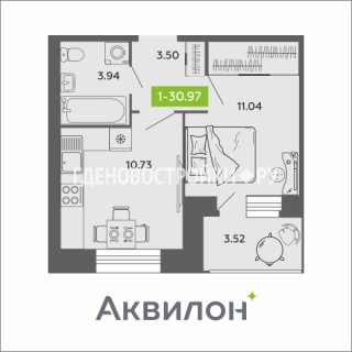 1-комн.Площадь: 30.97м2