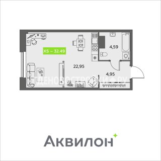 СтудияПлощадь: 32.49м2