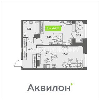 Продажа квартиры: 1-комн., 44.11 кв.м, 6.97 млн.руб. (id:148079)