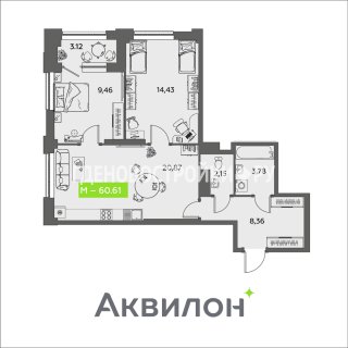 2-комн.Площадь: 60.61м2