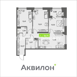 3-комн.Площадь: 74.56м2