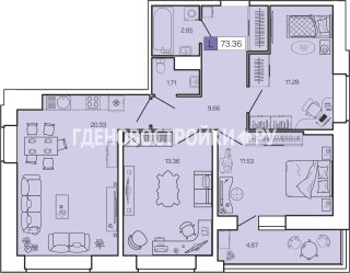 Продажа квартиры: 3-комн., 73.4 кв.м, 13.4 млн.руб. (id:156357)