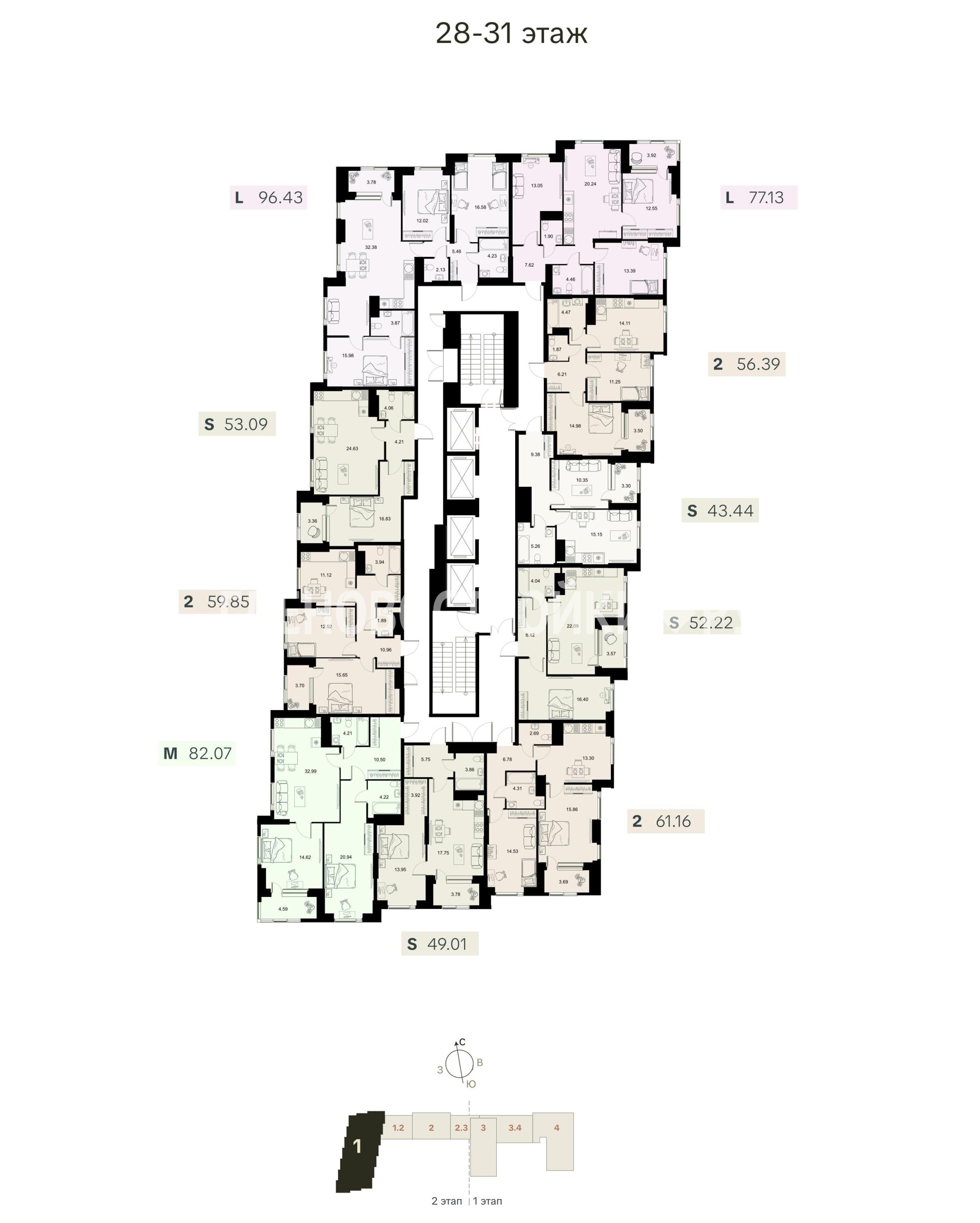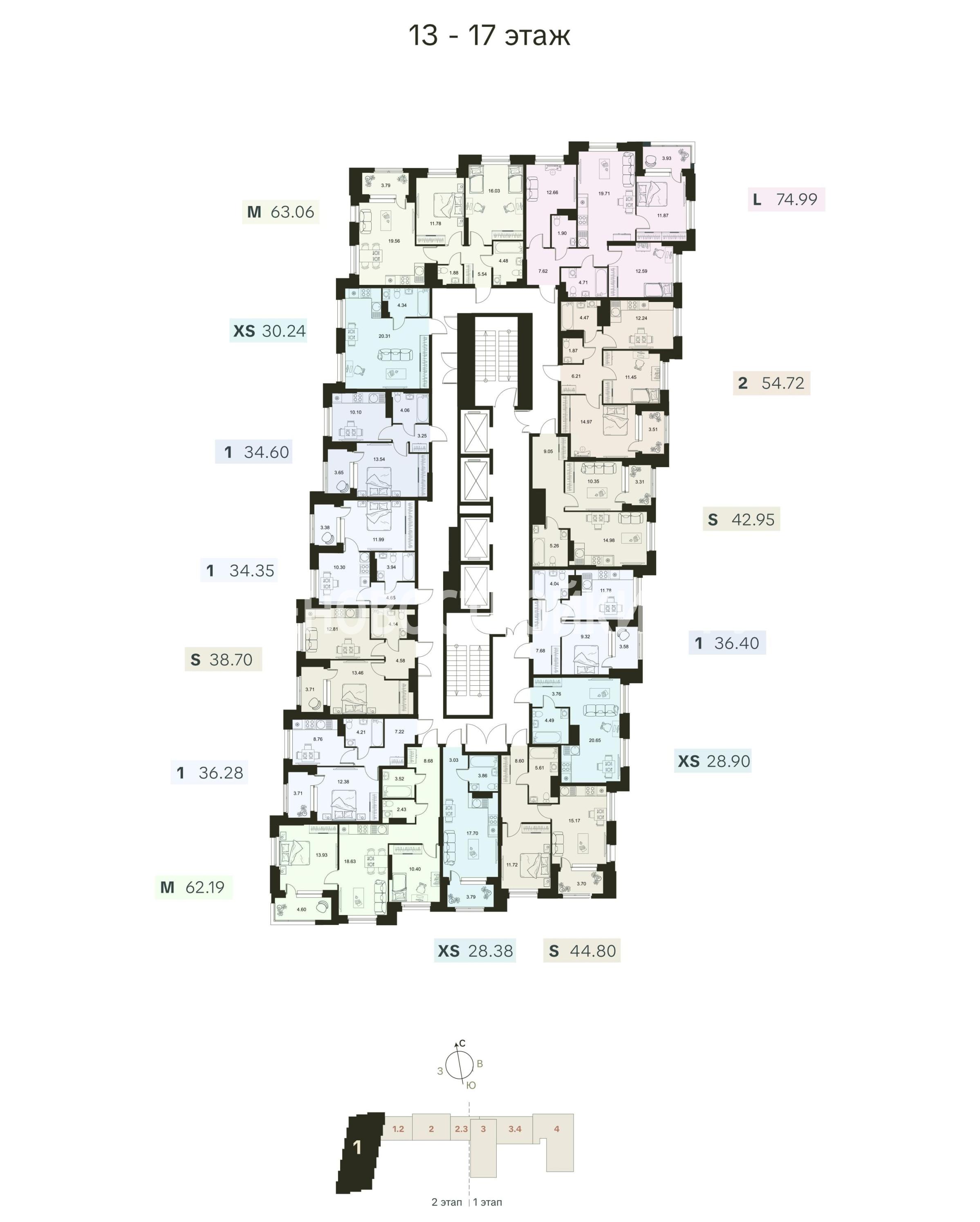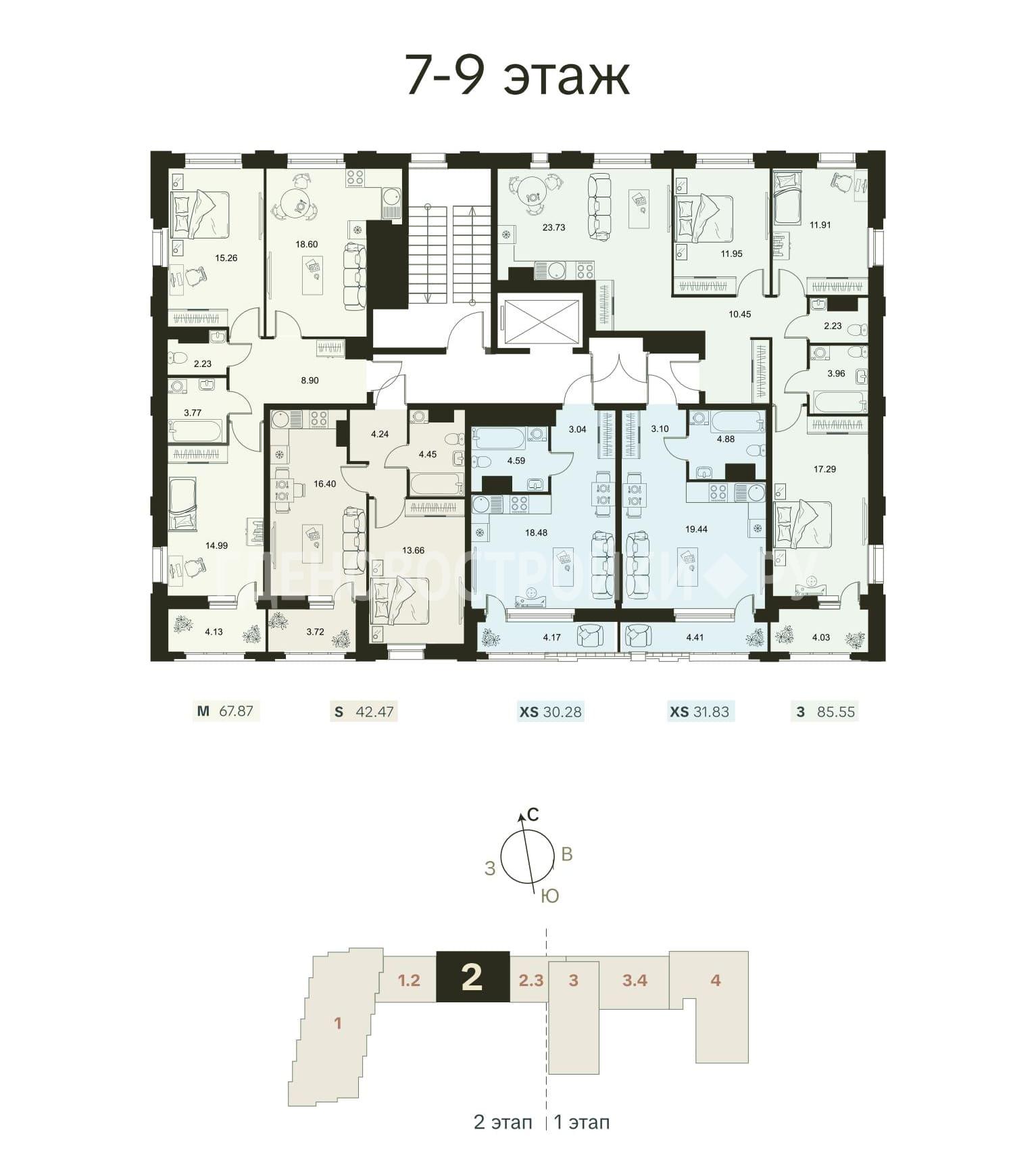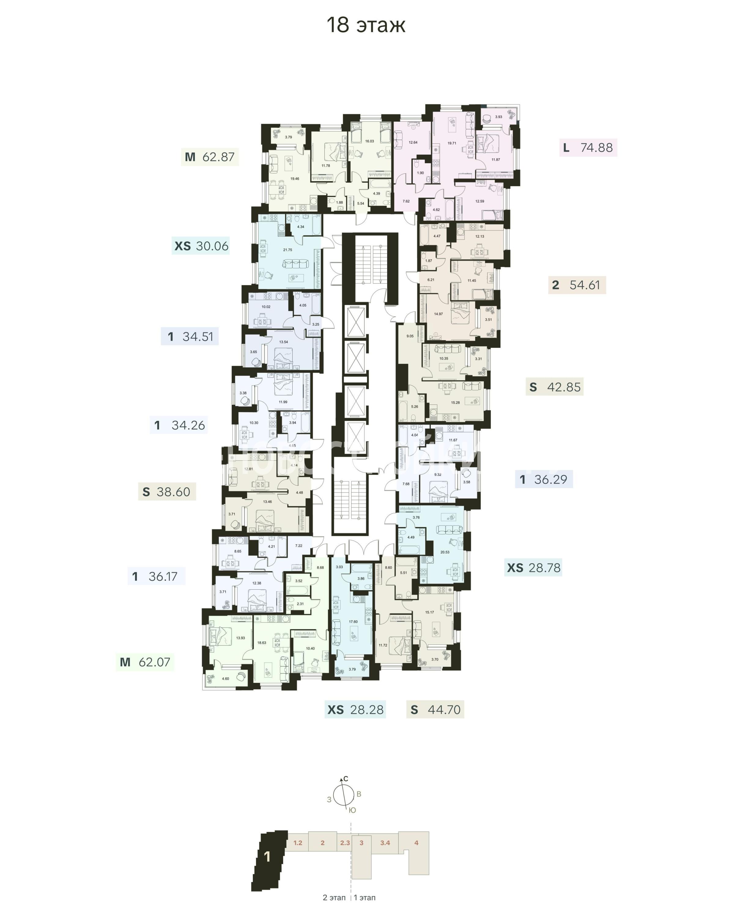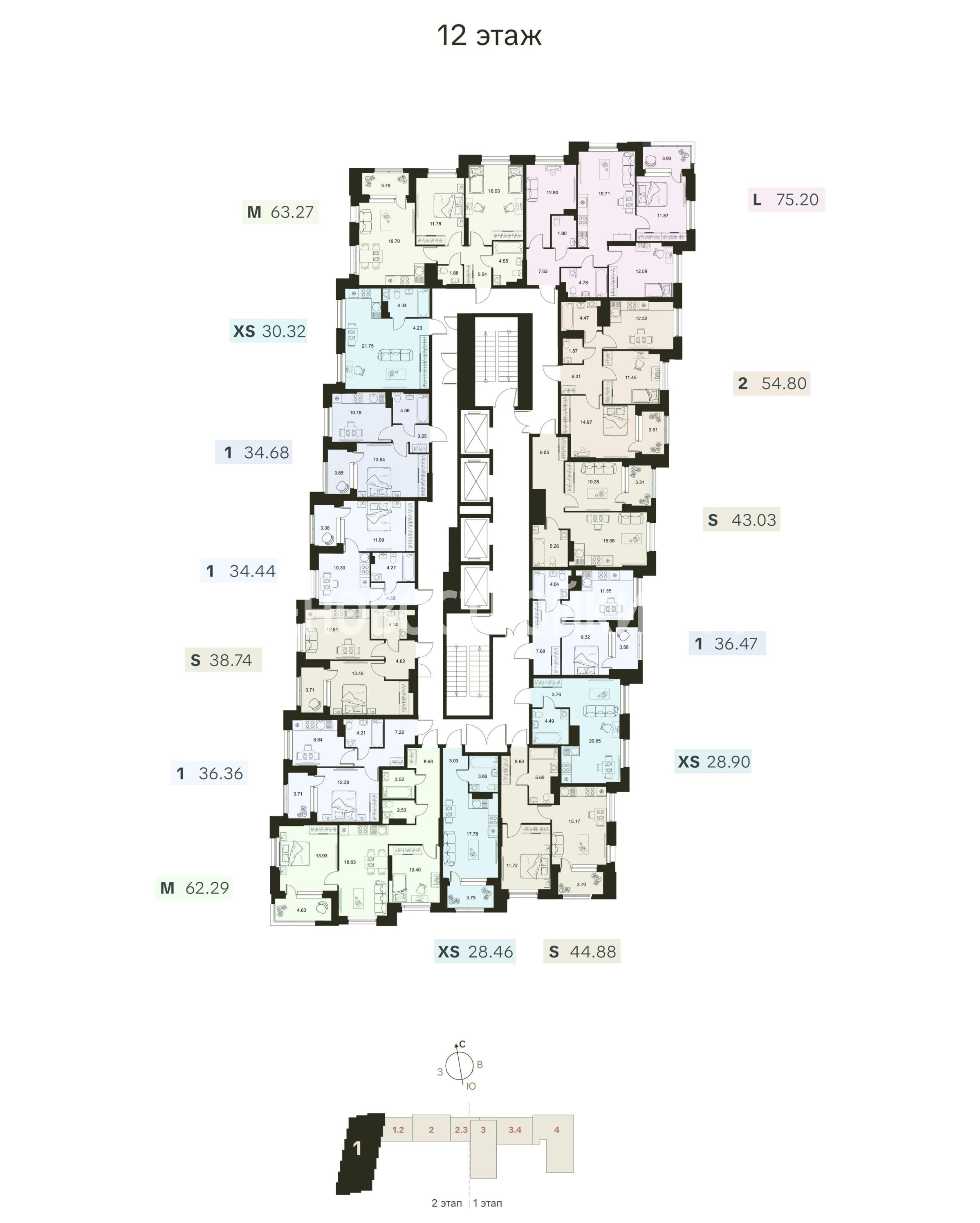 Разнообразие планировочных решений от квартиры-студии до еврочетырехкомнатных.