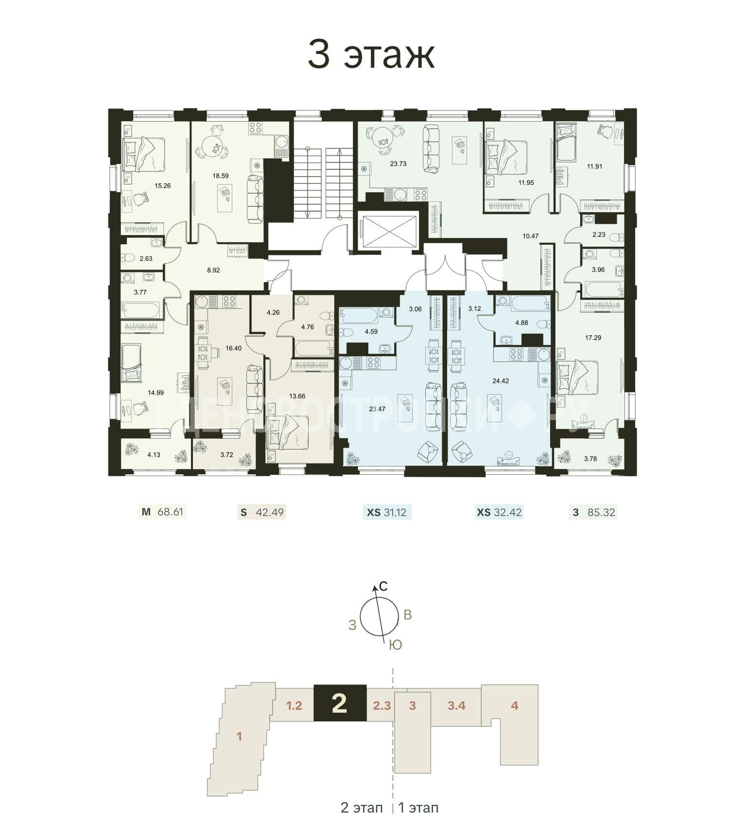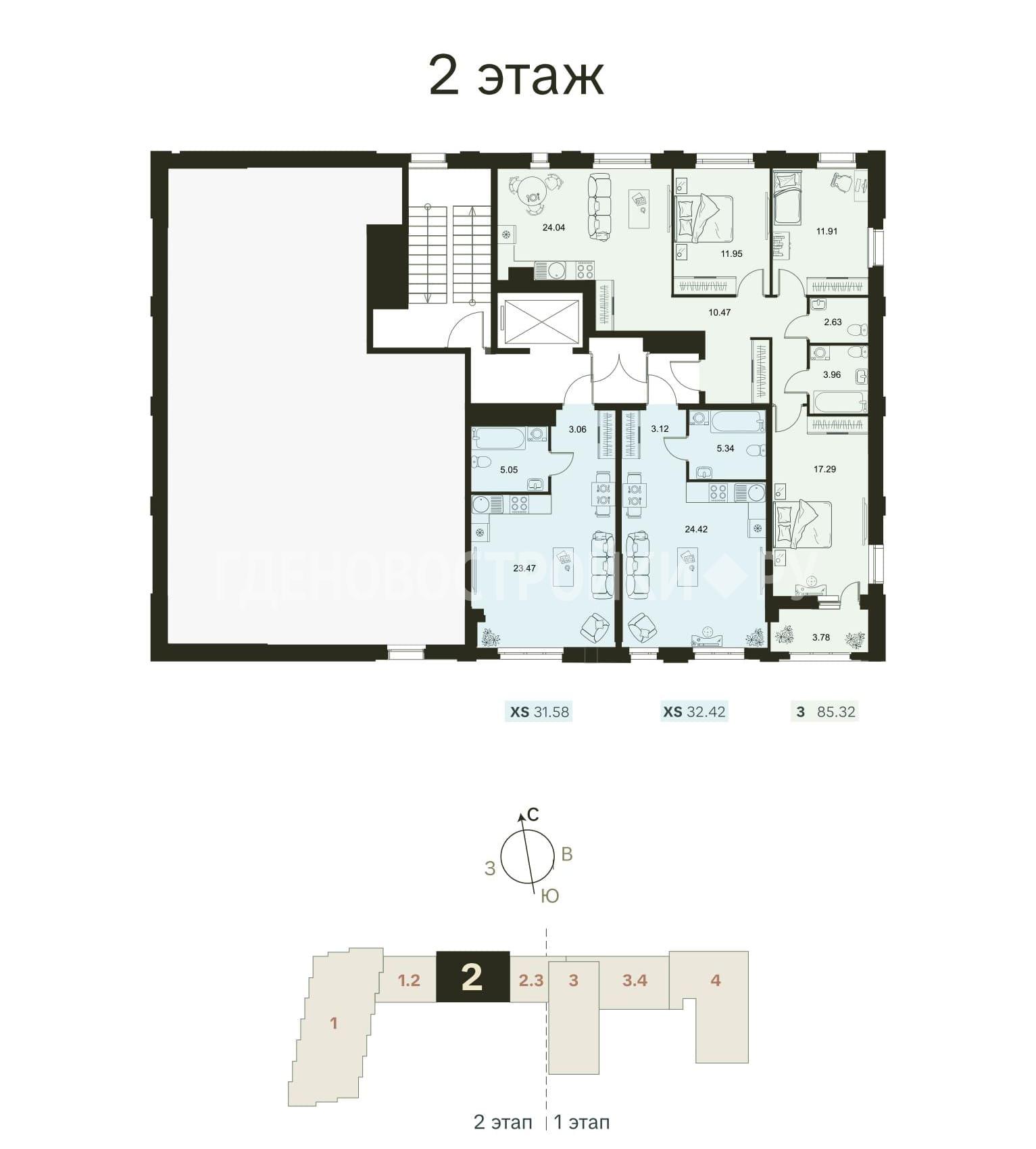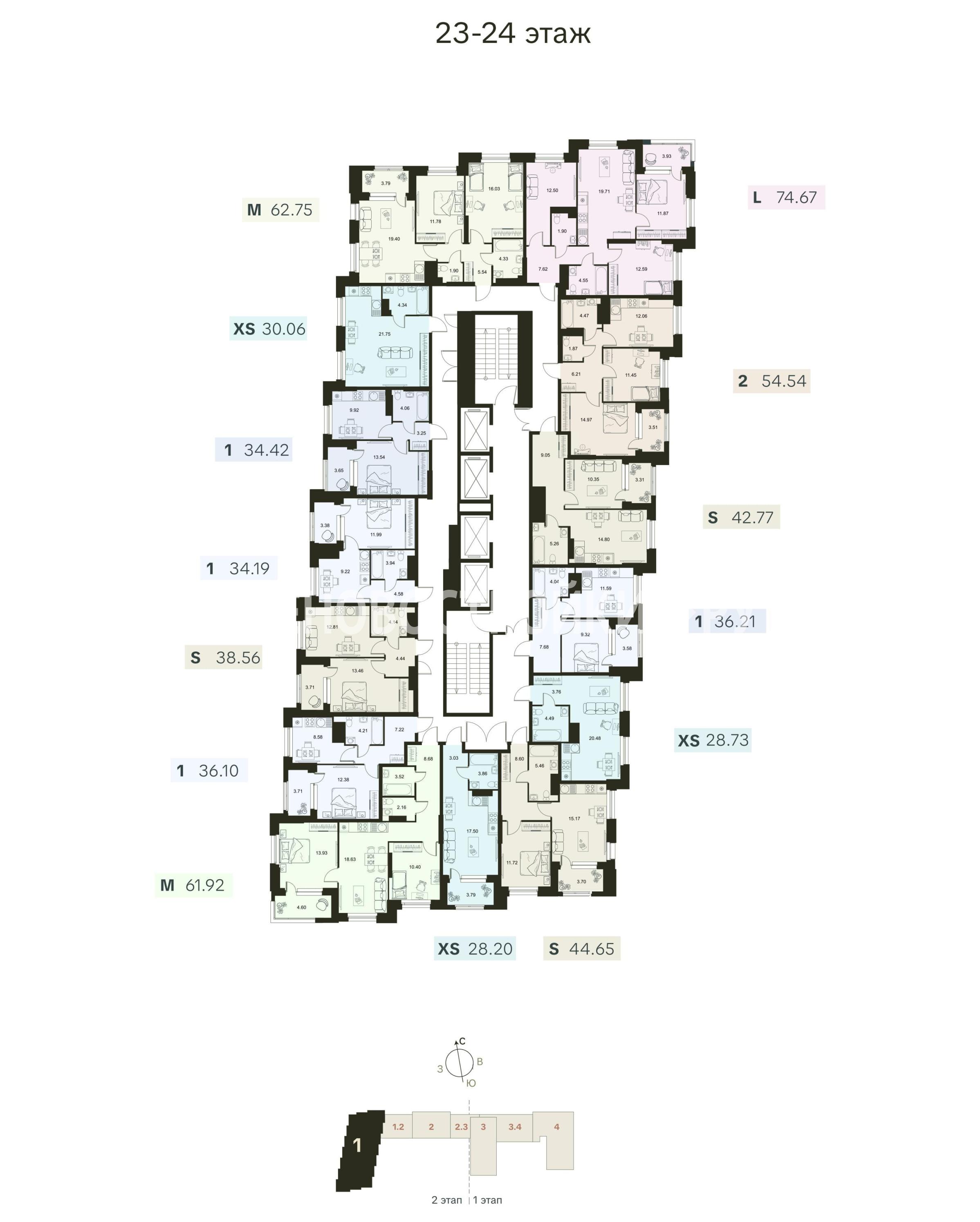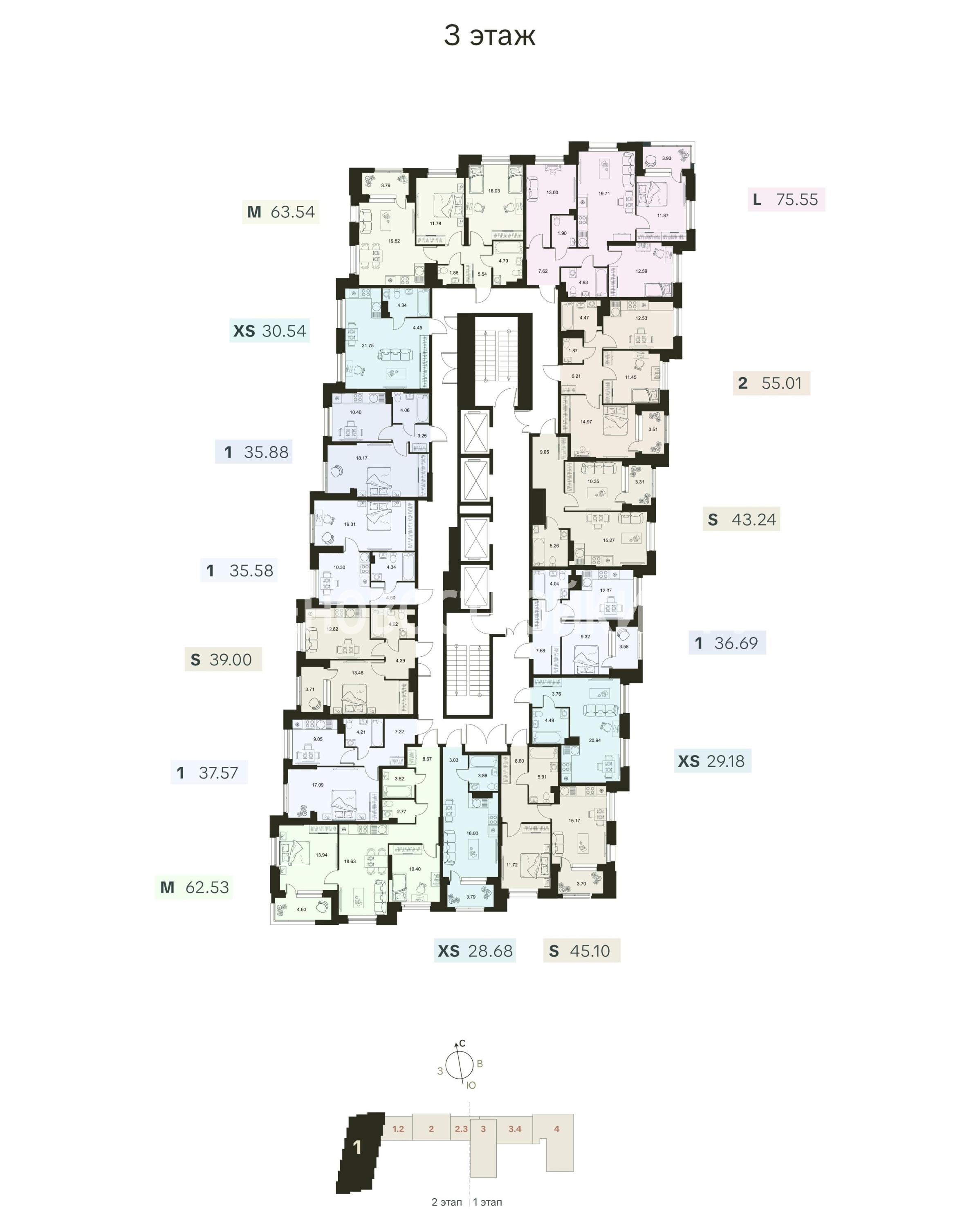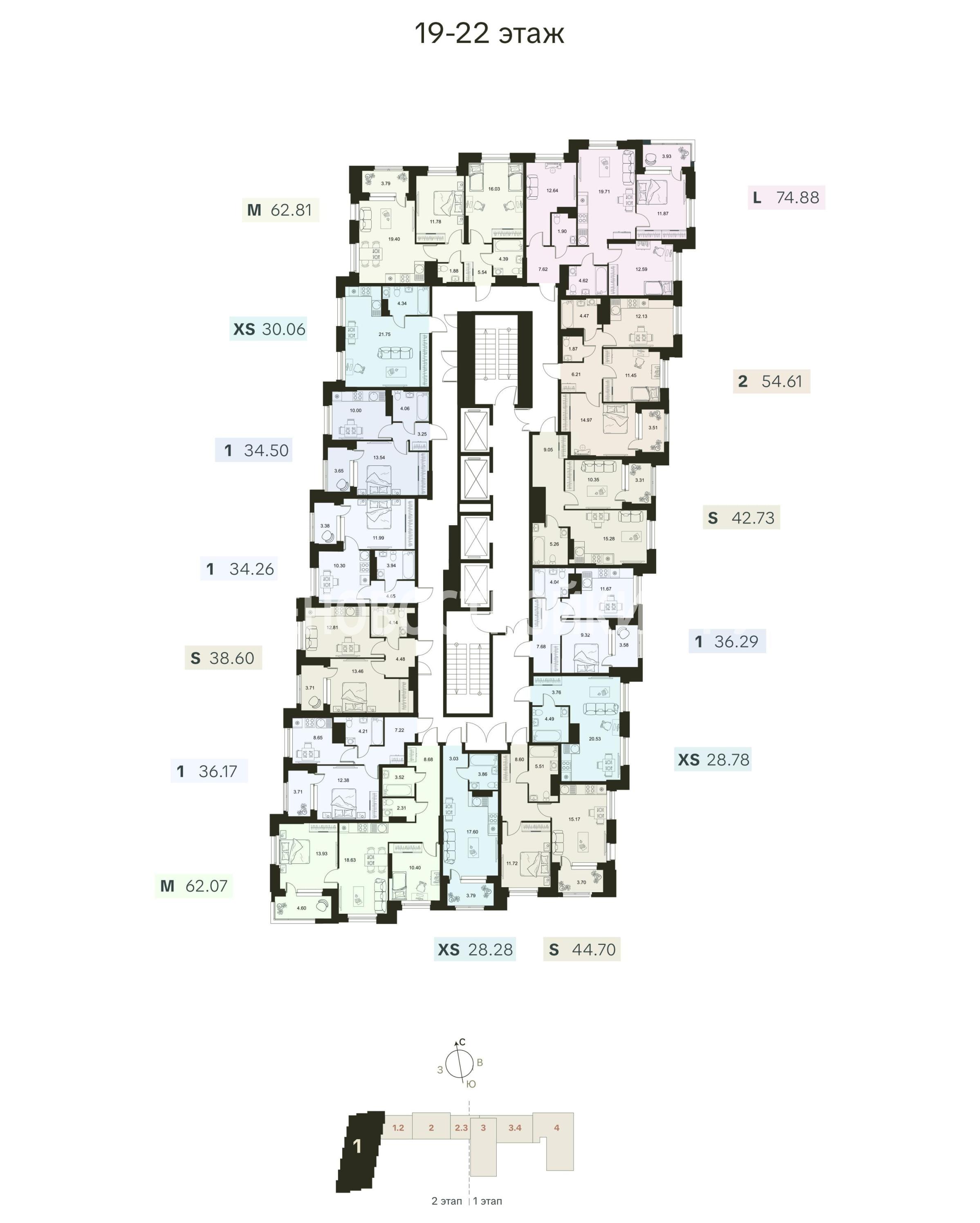 Разнообразие планировочных решений от квартиры-студии до еврочетырехкомнатных.