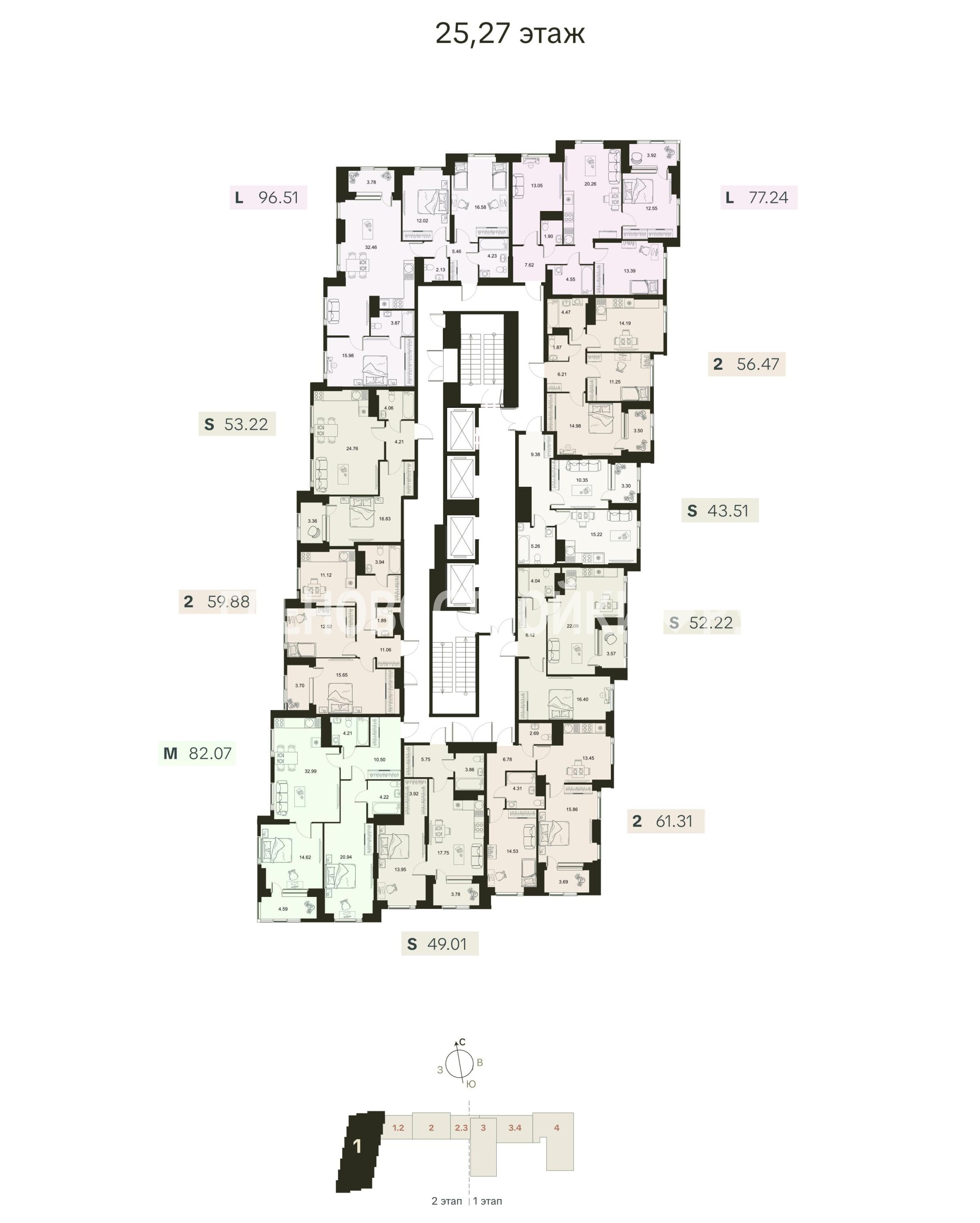- видовые квартиры на реку с панорамным остеклением в пол с 25 этажа;