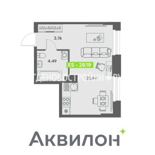 СтудияПлощадь: 29.19м2