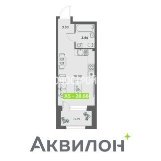 СтудияПлощадь: 28.68м2