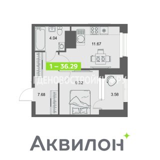 1-комн.Площадь: 36.29м2
