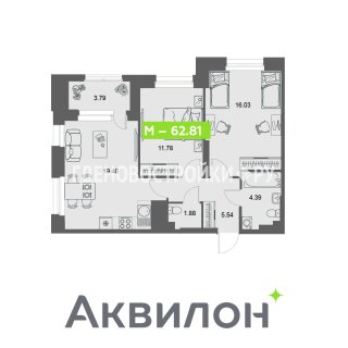 2-комн.Площадь: 62.81м2