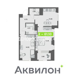 2-комн.Площадь: 61.1м2