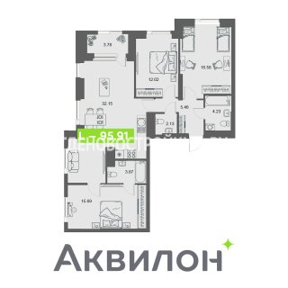 3-комн.Площадь: 95.91м2