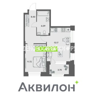 Продажа квартиры: 1-комн., 45.28 кв.м, 6.68 млн.руб. (id:172172)
