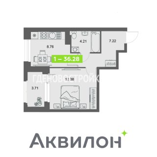 1-комн.Площадь: 36.28м2