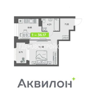 1-комн.Площадь: 36.17м2