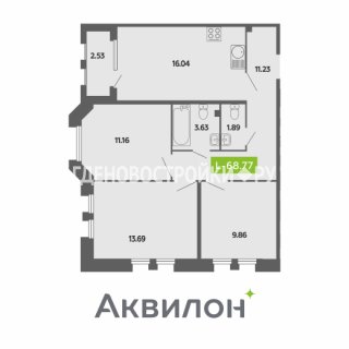 3-комн.Площадь: 68.77м2