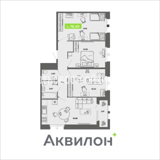 3-комн.Площадь: 76.5м2
