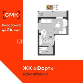 Продажа квартиры: Студия, 31.36 кв.м, 4.77 млн.руб. (id:174027)