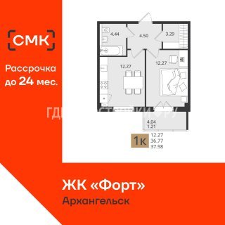Продажа квартиры: 1-комн., 37.98 кв.м, 5.65 млн.руб. (id:174031)