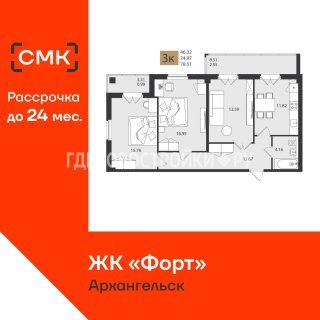 Продажа квартиры: 3-комн., 78.51 кв.м, 11.22 млн.руб. (id:174032)