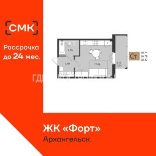 Продажа квартиры: Студия, 28.32 кв.м, 4.23 млн.руб. (id:174071)