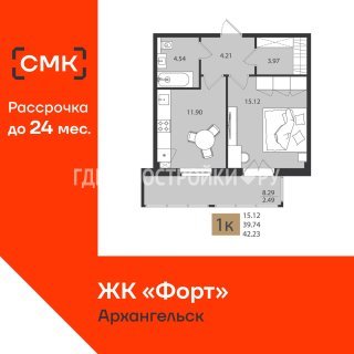 Продажа квартиры: 1-комн., 42.23 кв.м, 6.07 млн.руб. (id:174116)