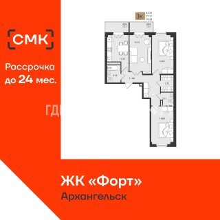 Продажа квартиры: 3-комн., 79.59 кв.м, 11.42 млн.руб. (id:174117)