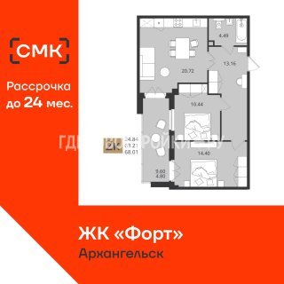 Продажа квартиры: 2-комн., 68.01 кв.м, 9.75 млн.руб. (id:174922)