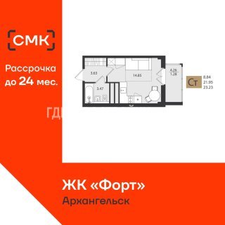Продажа квартиры: Студия, 23.23 кв.м, 3.93 млн.руб. (id:174945)