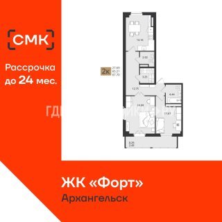 Продажа квартиры: 2-комн., 67.83 кв.м, 10.91 млн.руб. (id:175022)